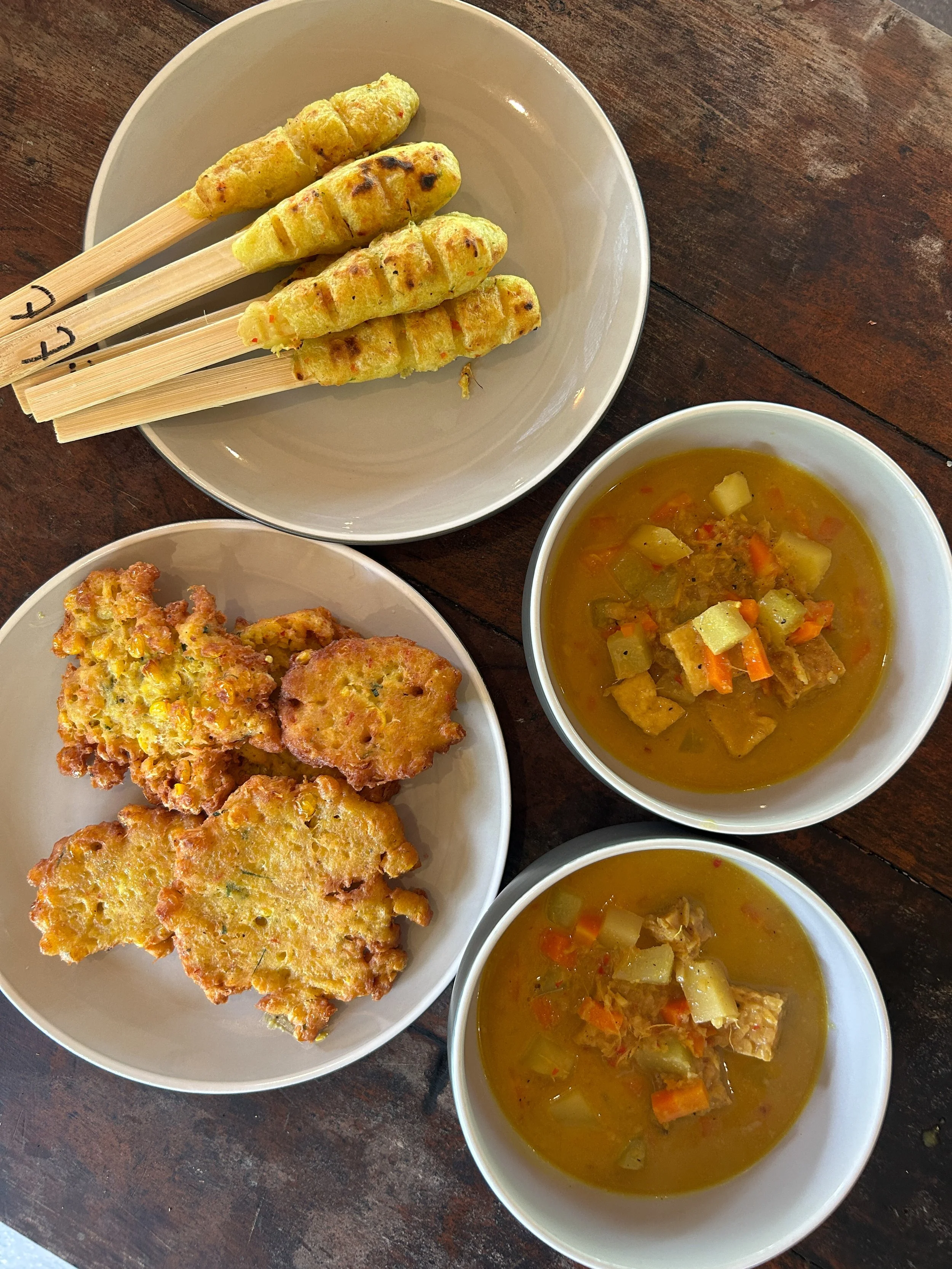 Upon arriving at the kitchen space, we were treated with snacks from the local market and handed cookbooks with all the recipes we were to make that morning. From Gado Gado (blanched vegetables with peanut sauce) to Perkedel Jagung (crispy Balinese corn fritters) to Bubur Injin (Balinese black rice pudding), the authentic Balinese flavours offered unparalleled tastes and satisfied every craving imaginable.